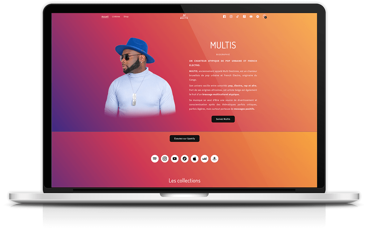 (Bélgica) Criado com Shopify, e codificado para personalizar para o melhor resultado e apresentar a imagem e a marca do artista.